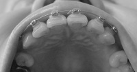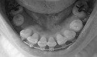下の前歯をまとめて奥へ引っ張るために、こんなバネが付きました。左右ともに。